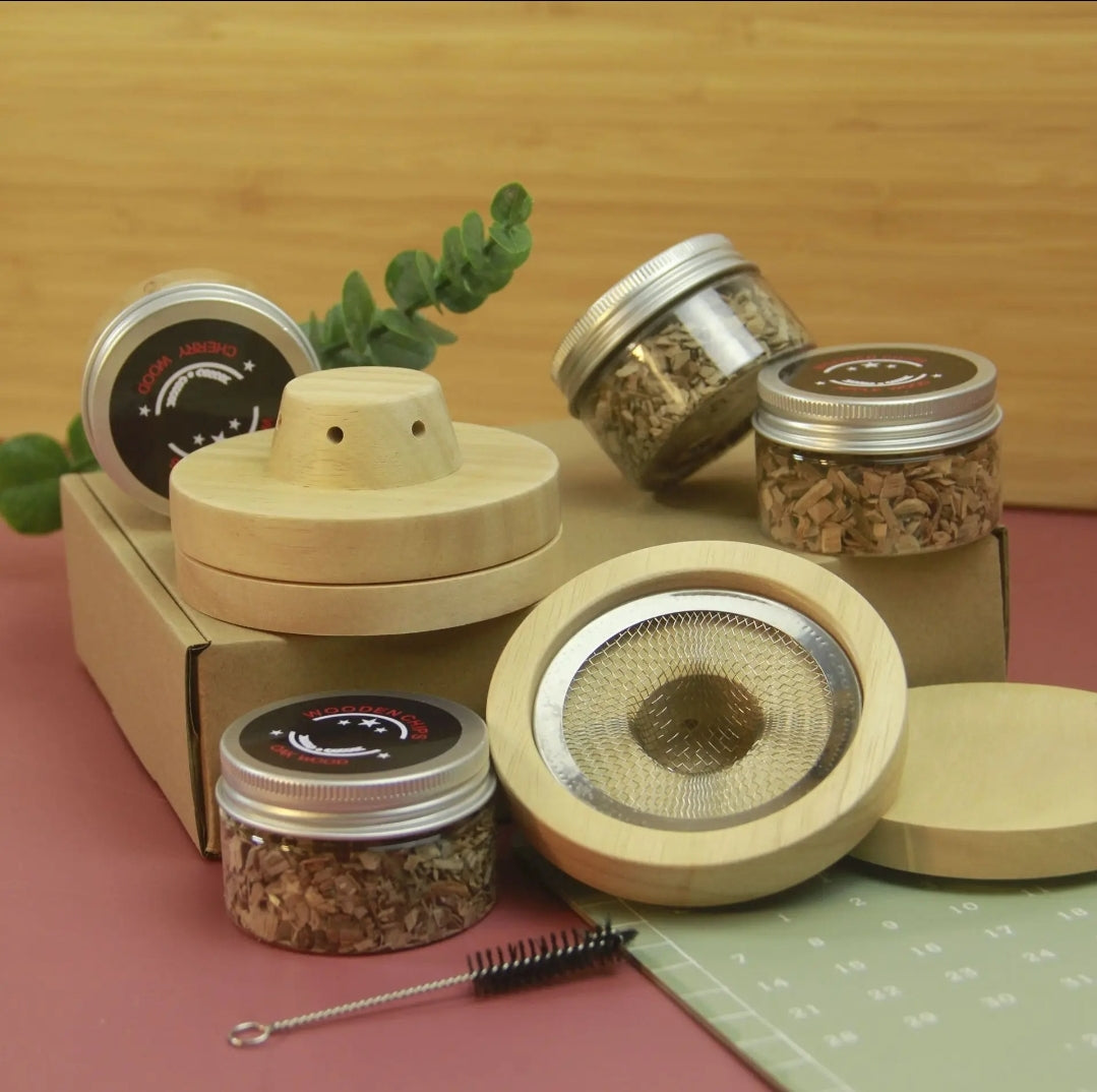 - Goûts et accessoires : notre kit fumoir à cocktail est livré avec une cheminée en bois sculpté à la main, un filtre en acier inoxydable, une brosse de nettoyage, une cuillère dorée, quatre caisses de copeaux de bois populaires (cerise, pomme, chêne et noyer) et une belle boîte cadeau. Il est difficile d'imaginer à quel point il sera rafraîchissant et merveilleux lorsque vous le buvez